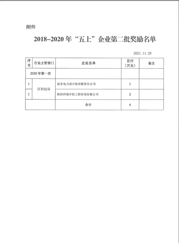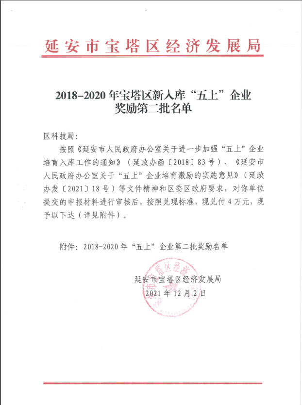 热烈祝贺陕西祥瑞宇恒工程咨询有限公司荣获“2020年度宝塔区升规入统突出贡献企业”称号